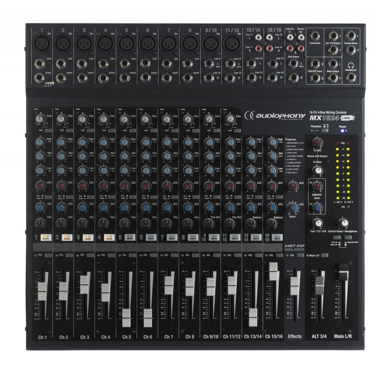 Avec ses 10 entrées XLR, son multi effets et son port USB, la MX1624 est taillée pour le Live et le Studio.