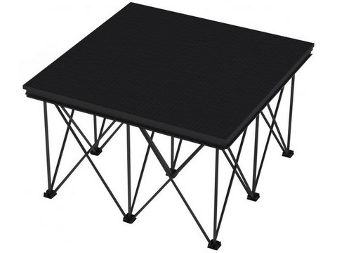 Thanks to the ingenious collapsible risers one person can quickly assemble a complete stage
