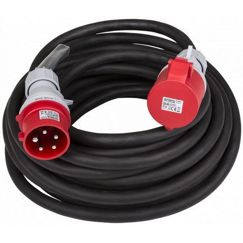 Câble d'extension de puissance CEE 5 pôles avec thermorétractable transparent (10 cm, non rétréci) pour étiquettes personnalisées.