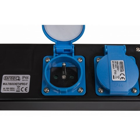 Boîte de distribution professionnelle de puissance avec 4 douilles couvertes avec câble en caoutchouc flexible et thermorétractable transparent (7cm, non rétréci) pour les étiquettes personnalisées.