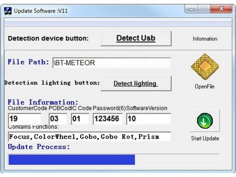 Cet appareil vous permet de faire aisément des mises à jour du firmware d'effets et projecteurs DMX compatibles.