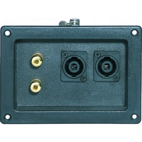 Plaque de connection pour enceinte avec 2x connecteur compatible Speakon® et 2 connecteurs à vis