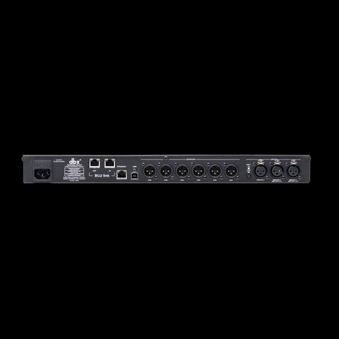The VENU360-B model provides all the features of the standard VENU360 model but with the addition of BLU link-enabled RJ-45 ports for interfacing with other BLU link-equipped devices, such as the dbx TR1616, the PMC16s, the BSS® Audio Soundweb London devices, or a Soundcraft® mixing console equipped with a BLU link option card. The VENU360-B model also provides a 7x6 routing/mixing matrix (using any available combination of AES, analog, and BLU link input channels) and a 3x6 signal processing chain.