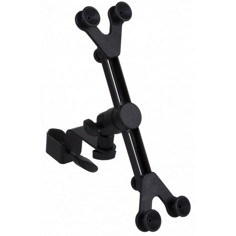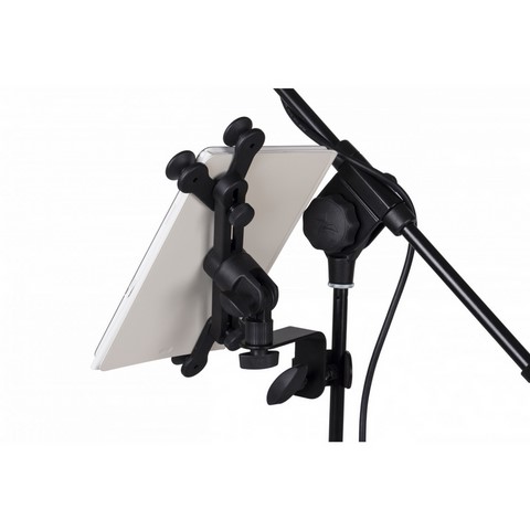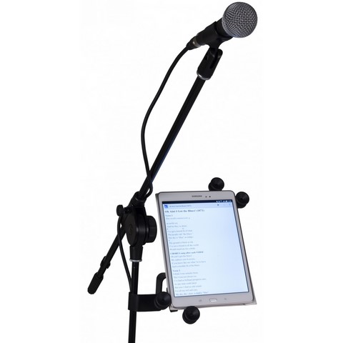 Universal Tablet holder for microphone stands for 7" to 11" screens.