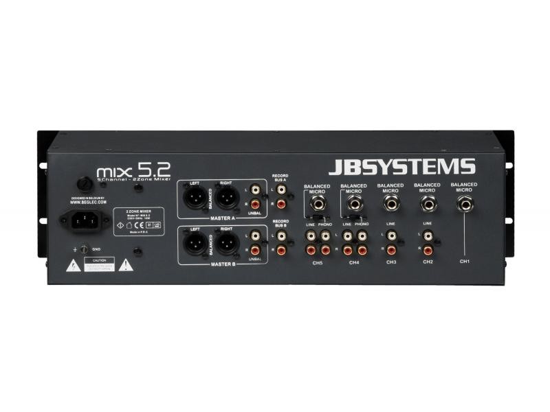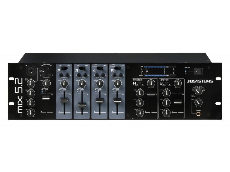 MIX5.2  11 entrées sur 5 canaux (5 mic balancés + 4 line + 2 phono)