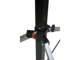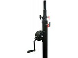 Pied à treuil avec frein automatique et sécurité verrouillable Fabriqué en france Hauteur maximale: 4m Hauteur minimale : 1,68m Embase : 1,15-1,50m Section du dernier mat: 35mm Charge maximale : 80kg Poids: 16kg