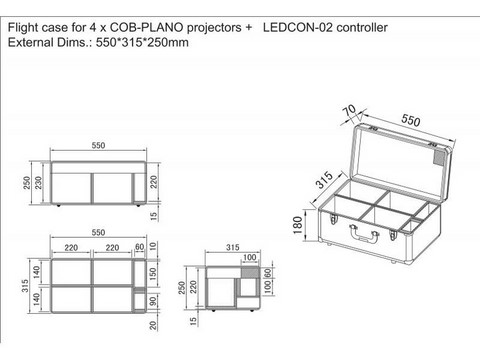 Light and compact case, specially designed to carry 4x JB Systems COB Plano + a Ledcon-02 Mk2 controller